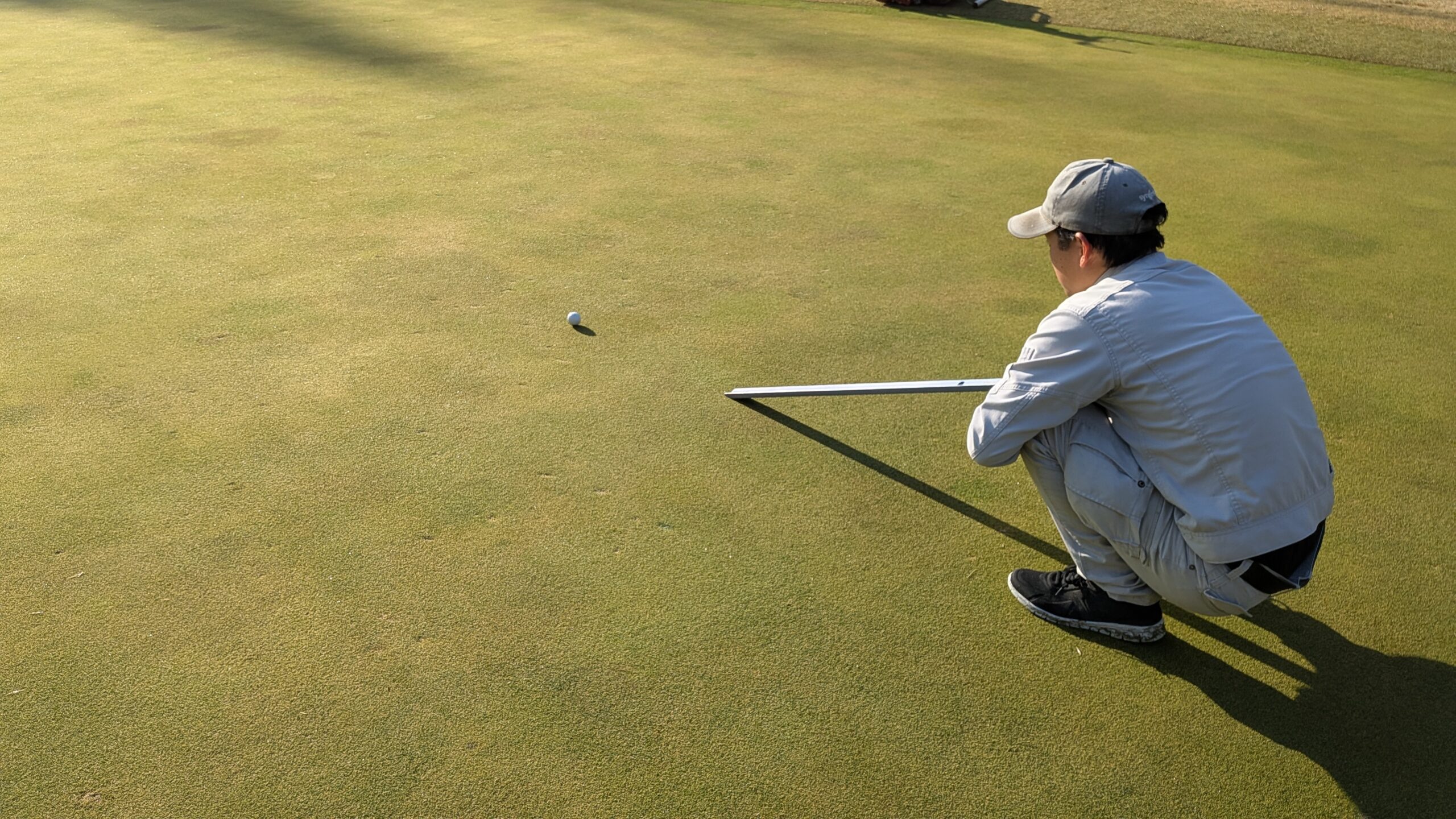 スティンプを測定することで、グリーンの状態を数値で管理できるため、刈高の調整、転圧ローラーの使用、散水や雨などの水分量のコントロール、管理作業の判断材料として大変重要です。特に朝露の量や前日の天候、芝の生育状況によってグリーンスピードは大きく変化するため、毎日の測定がプレー性の安定につながります。